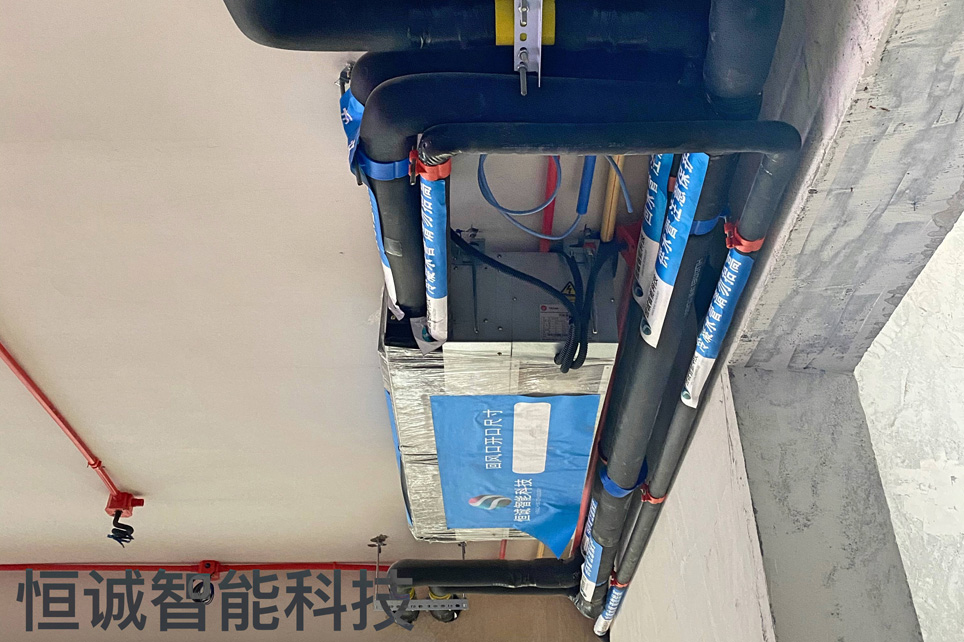 本套獨棟別墅有較大的花園且地質條件適合打井。因此采用了綠色節能的地源熱泵系統。空調采用風機盤管制冷、地暖盤管制熱。