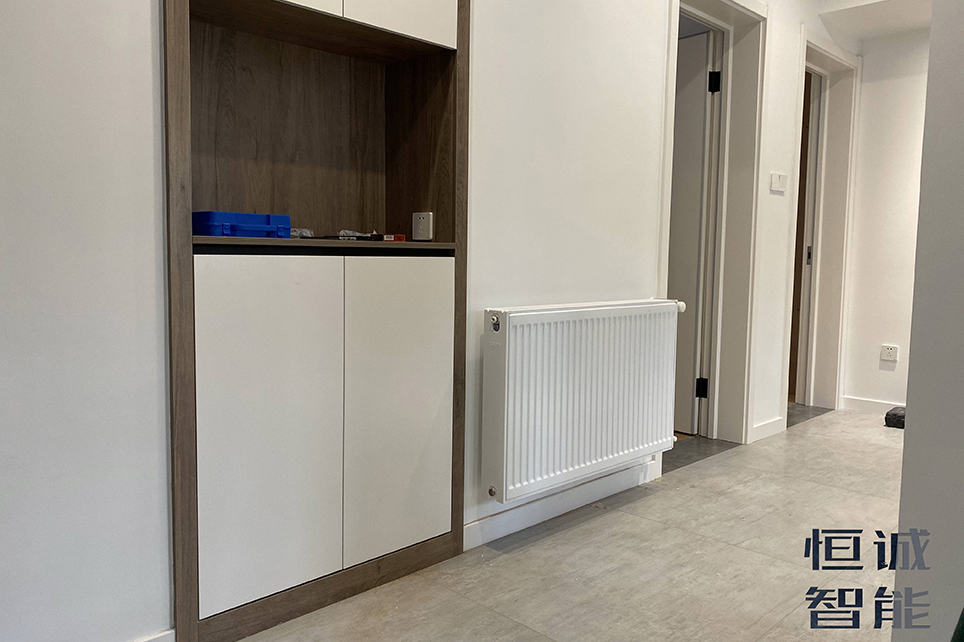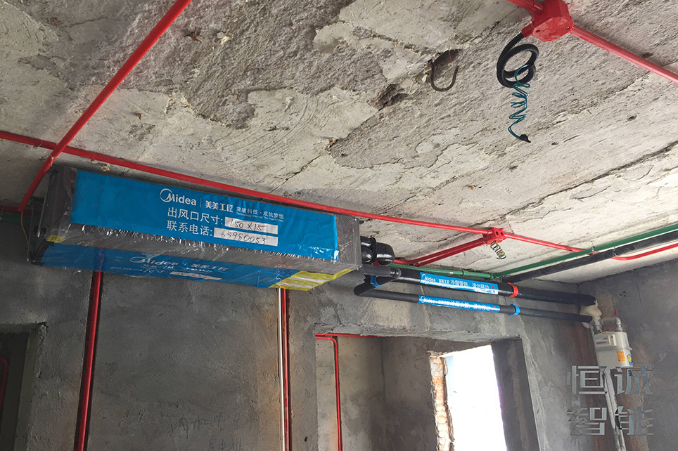 本案是老房新裝修的案例??筒蛷d采用美的一拖一風(fēng)管機(jī),內(nèi)機(jī)和管路全部隱藏,結(jié)合吊頂?shù)奶幚恚烙^大氣。采暖采用威能壁掛爐和暖氣片的搭配,冬季采暖效果更好,且能同時(shí)提供生活熱水。