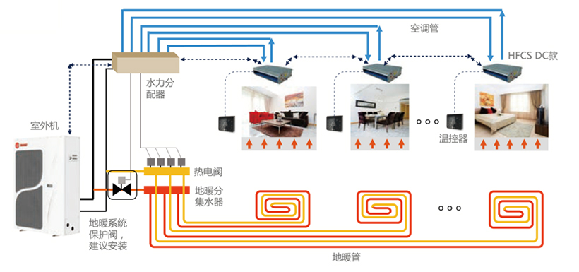 適用于有地板采暖、生活熱水需求,單套系統(tǒng)對(duì)應(yīng)建筑面積70~500m2的高檔公寓住宅及別墅用戶。