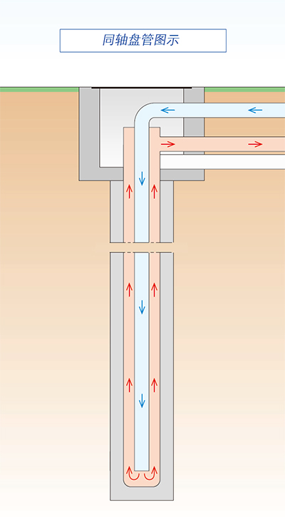 深層地?zé)釗Q熱盤管采用垂直埋管的方式,深度在100-120米之間,有些埋管深度可達(dá)200米以上。
